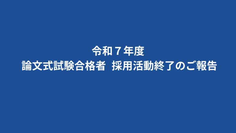 令和7年度 論文式試験合格者の採用活動は11/24(月)をもって終了いたしました。